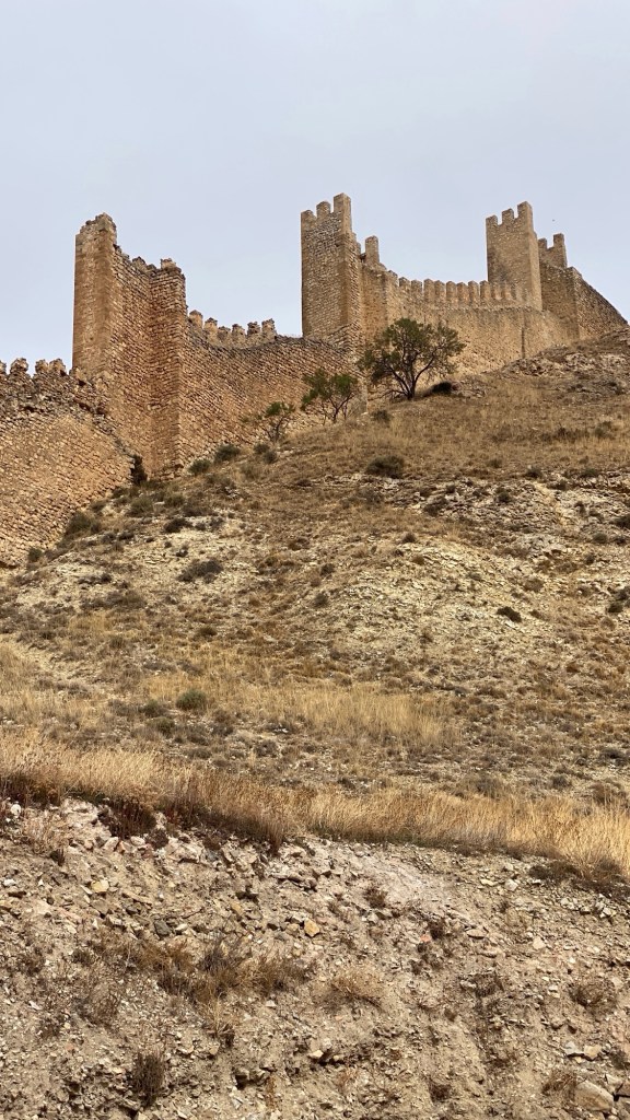 Albarracín (https://www.turismodearagon.com/ficha/albarracin/) es un pueblo con su encanto, tiene un toque medieval, empinado, calles estrechas, lo antiguo se mezcla con lo restaurado, en línea general bien conservado dónde predomina el color típico del tocho. Pasamos por la plaza Mayor cuadriculada, a Mon le recuerda las pelis dónde ejecutan a alguien y todo el pueblo está allí congregado. Vamos subiendo haciendo varias fotos hasta salir y allí vemos la muralla, empezamos uno de los tres caminos que llevan a la cumbre, los otros dos empiezan desde otras ubicaciones.