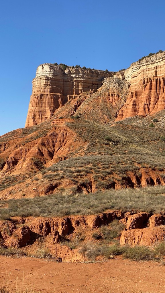 En marcha, hoy no regresaremos a este camping, Mon ha propuesto ir a ver el Cañón Rojo de Teruel también conocida como Rambla de Barranchina (https://exploraturuta.com/visita-el-viejo-oeste-en-el-canon-rojo-de-teruel/) así que regresamos a la capital.