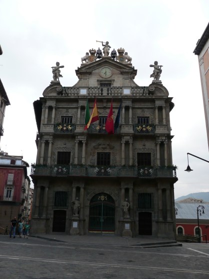 Visitamos el centro de Pamplona, el recorrido del encierro, las murallas y la calle Estafeta, donde comimos en una tipica tasca (tengo foto comprometida de Fa con las manos en la masa…)