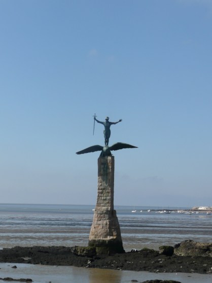 Hemos llegado hasta la punta mas septentrional de esta peninsula: le Pointe du Raz, un faro en medio del mar visto desde una costa rocosa. La imagen en mitad de una tormenta tiene que ser espectacular. Allí, el monumento a la virgen de los naufragados.
