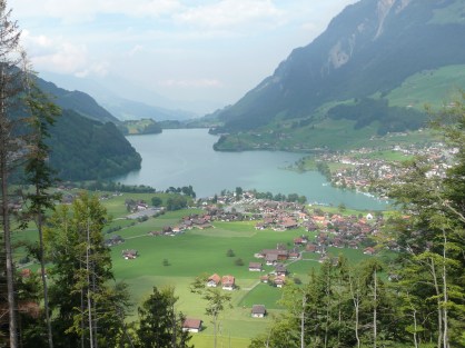 Interlaken – Pueblo situado entre dos lagos, paseo con la moto, se ve una de las montañas mas altas de Suiza, el Jungfraujoch 4.158 mts., siempre nevado.