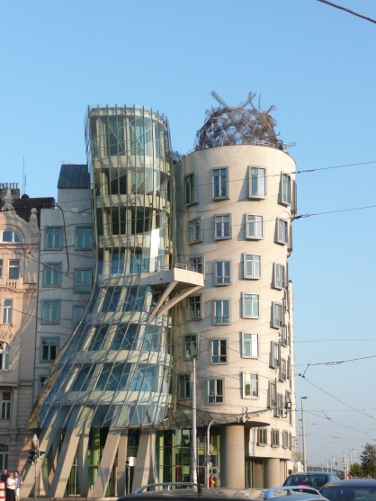 P.D: el edificio «raro» es la Casa Danzante de Frank Gehri (el mismo del Guggenheim de Bilbao) y se le conoce como «Ginger y Fred». ¿Adivináis quién es quién?