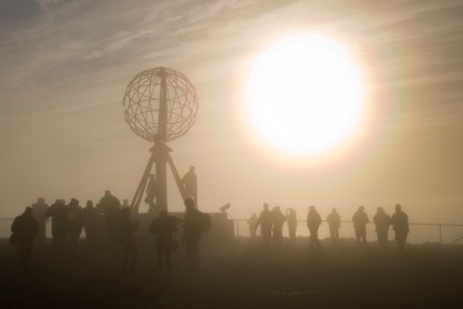 Entramos al edificio donde compramos unos souvenirs, hacemos unas cuantas fotos más y, viendo que el sol ya no baja, pensamos que lo mejor es irnos y bien que lo hemos hecho porqué los centenares de autocares allí presentes también tienen que regresar para devolver a los turistas a sus respetivos cruceros amarrados en el puerto de Honningsbåg.