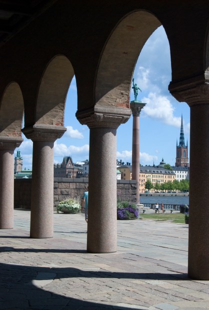 Metro y para el ayuntamiento. Allí preguntamos y en la entrada y justo en 1/2h. hay visita guiada en español. El guía, un chico joven y cómo no rubio, había vivido diez meses en Barcelona. En el típico plástico colgado llevaba la banderas sueca, inglesa, francesa, finlandesa, española y catalana, casi ná…