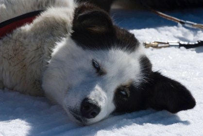 Finalmente hemos llegado a una velocidad sostenida hasta el punto de salida. Allí hemos hecho fotos a los perros y hemos charlado con el responsable de los mismos el cual nos ha contado que la base la tienen en Jaca, que los perros empiezan a trabajar al año y lo hacen hasta los 12-13 luego se retiran allí. Que organizan viajes de varios días en trineo en Laponia y en Mongolia, lugar a donde se irá en mayo.