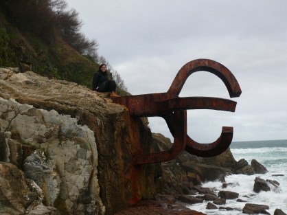 Se trata de esculturas de acero llamadas el Peine del Viento incrustadas en unas rocas, el fuerte oleaje del mar Cantábrico las azotan constantemente, la primera, ubicada en la parte mas arriba es la que alcanzamos para hacernos unas fotos.