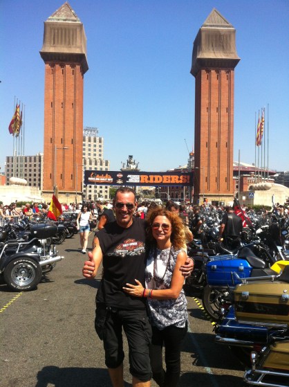 Con anterioridad, justo delante del edificio de tráfico, parados en el semáforo, Mon saluda a otro harlero y él, en cuanto la reconoce se le escapa la pregunta de rigor: ¿Qué haces tú subida a una Harley? Seguimos, más tarde nos volveremos a encontrar cerca del estadi Lluis Company de donde saldrá el desfile.