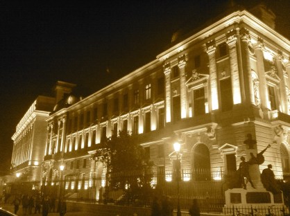 Siguiendo nuestro paseo en dirección norte pasamos por delante de un edificio militar, la universidad, hasta llegar a la plaza de la Revolución, enorme, allí Alex nos enseña el Ateneo Rumano, el Museo del Arte, antiguo Palacio Real y el edificio donde desde un balcón, Ceaucescu pronunció su último discurso.