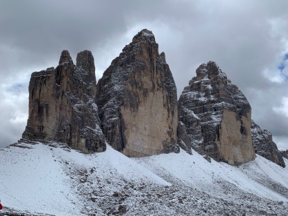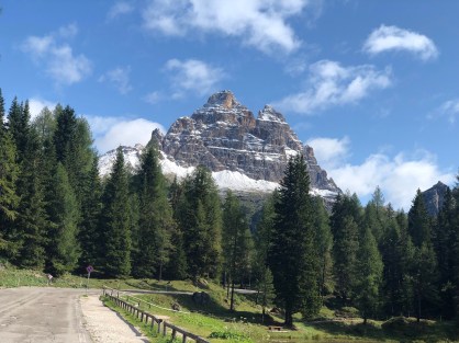 Seguimos hasta que veo un cartel que pone: «Tre Cime di Lavaredo» nuestro destino de hoy, allí que vamos. Dejamos atrás la región de el Trentino Alto-Adige y entramos en el Veneto, concretamente en la provincia de Belluno. La carretera empieza a subir, de repente hay un peaje, hacemos una pequeña caravana y, cuando nos toca, nos cobran 20€ para pasar, esto porqué vamos en moto, el resto de los vehículos pagan bastante más según su tamaño.