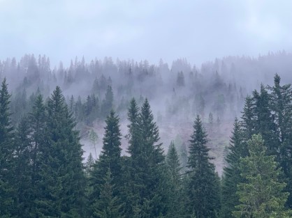 Ha llovido toda la noche y también ha nevado!!! Si, si, nevado en verano, esta mañana la parte de arriba de las montañas estaban completamente blancas.