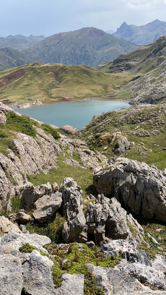 Finalmente tenemos en nuestro horizonte abajo del otro valle el destino final de nuestra excursión, el Ibón de Estanés, un enorme embalse que separa España con Francia. Empezamos la bajada.