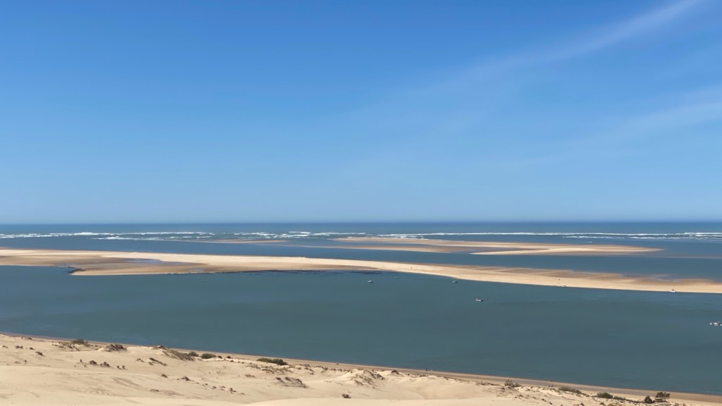 En frente nuestro un poco más al norte está la península ubicada entre el río Garonne que desemboca en el mar y Bordeaux, el final es Cap Ferret, propongo a Mon ir después de dar un tour por Arcachón, le parece bien.