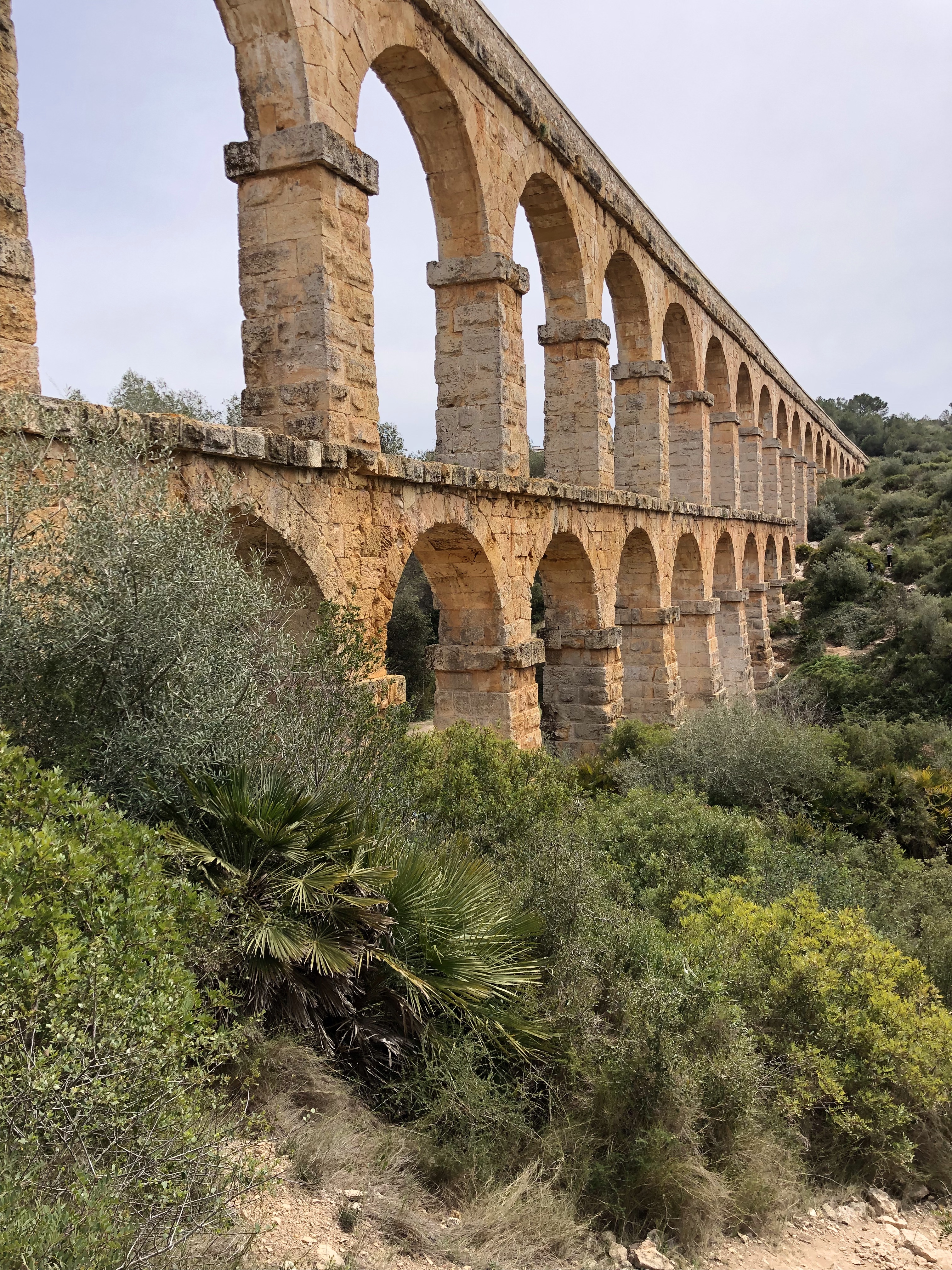 Tras pasar por una pequeña cantera en la parte alta del parque llegamos finalmente al Acueducto de les Ferreres, su nombre real. Los romanos construyeron esta obra para llevar el agua a Tarraco, un acueducto de casi 200m de longitud y casi 30m de altura en dos hileras de arcos. Pensar que esta obra tiene más de dos mil años lo hace aún más imponente.