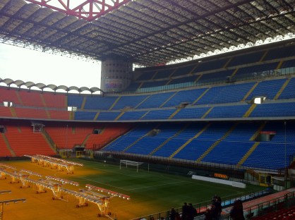 En lugar de pasear por el centro decidimos visitar el estadio de San Siro, allí sacamos entradas para el tour guiado y el museo. Justo al llegar empieza el tour, somos un grupo de aproximadamente 25 personas de diferentes nacionalidades así que escuchamos las explicaciones en ingles y en italiano. En primer lugar accedemos al interior del estadio, desde allí las vistas son espectaculares, yo nunca había estado tras la reforma que hicieron en ocasión del mundial del 1990. Ahora parece mucho más grande que antes y una vez más se confirma uno de los estadios donde la visibilidad premia con respecto al diseño exterior, además todas las localidades están a cubierto.