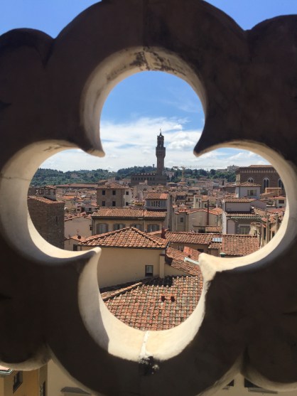Una vez arriba nos encontramos en el tercer punto más elevado de la ciudad, la cúpula le supera solamente por 10m y mas arriba se encuentra la torre del «Palazo Vecchio».