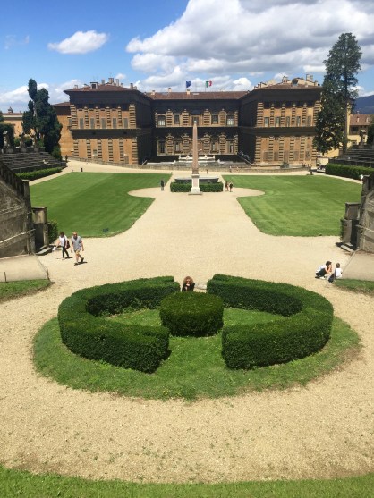 Visitamos entonces una parte del palacio la “Galleria del Costume” y salimos al exterior para recorrer el “Giardino Boboli” donde damos un largo paseo, el sol ahora pega fuerte, menos mal que hay muchas zonas a la sombra.