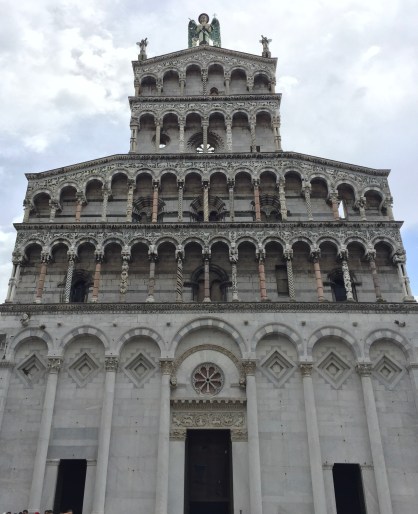 Seguimos nuestro recorrido hasta una plaza ovalada, lugar típico para turistas, llena de restaurantes y sus terrazas, aquí en su día, había un anfiteatro romano del cual nada queda. A pocos pasos topamos con la “Basilica di San Frediano”. Convergemos hacia el centro hasta llegar a la “Chiesa di San Michele in Foro”. El color predominante de las iglesias es el blanco, obviamente por el mármol que es su denominador común.