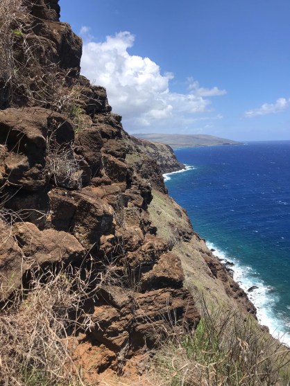 Desde aquí se respira mucha paz, la visión de la costa es preciosa, con su oleaje y el agua de un color azul intenso, el Pacifico abraza la isla y da sensación de protegerla.