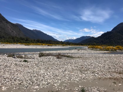 De nuevo en marcha, bordeamos el lago, muy poco tráfico, dejamos atrás los hoteles y seguimos, el cielo se abre, las nubes dejan paso a un cielo azul donde poco a poco aparece el sol. La temperatura siguie siendo baja, Chile es tan distinto entre una zona y otra que hasta hoy hemos pasado del calor seco del desierto de Atacama con sus noches frías al clima tropical de la Isla de Pascua a la región de los lagos donde parece que estamos en Europa continental.
