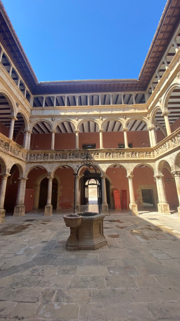 Visitamos el patio del Centro de Interpretación del Renacimiento y Reales Colegios de Tortosa, muy bonito, en frente está el “Reial Col•legi de Sant Jordi i Sant Domènech”.