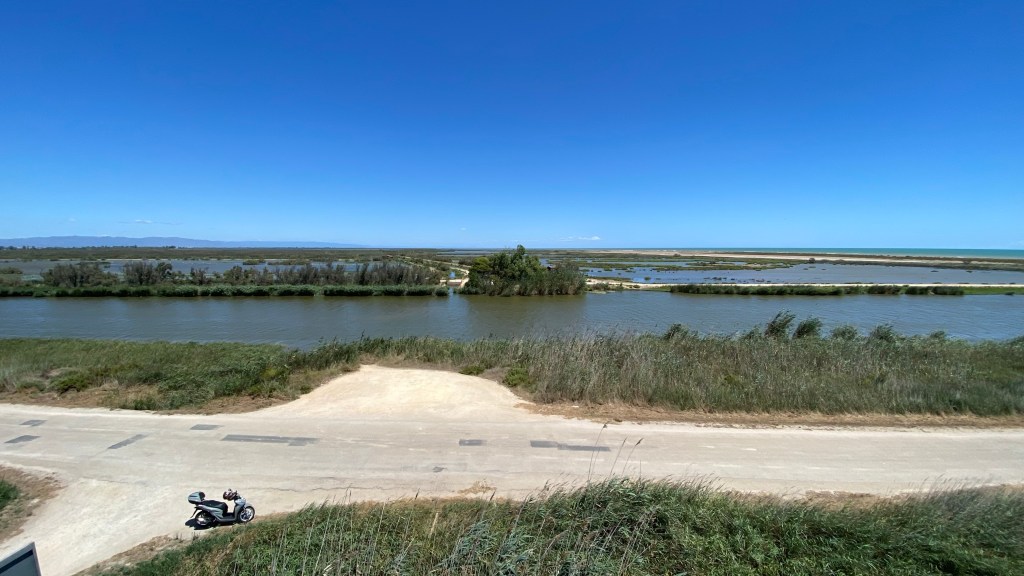 De nuevo en marcha con el buen sabor de haber aprovechado bien la mañana, nos dirigimos al restaurante La Barraca en L’Ampolla https://www.turismodeltadelebro.com/listado/restaurante-la-barraca-del-delta/ lugar recomendado por los Paders y reservado con antelación. Una vez allí aparcamos a la sombra y disfrutamos de un óptima comida mediterránea y e un servicio atento.